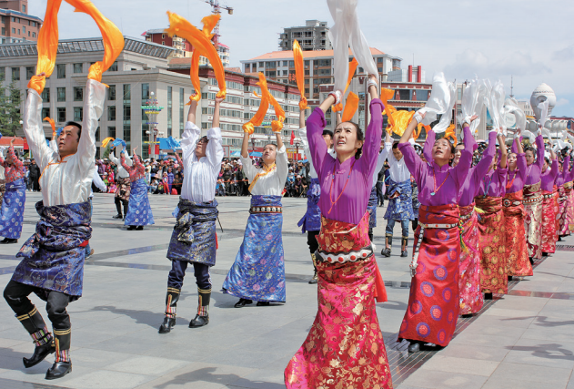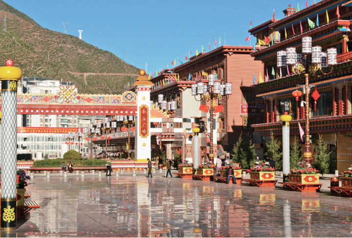 • 甘肅省合作市的市民都喜歡到香巴拉主題文化廣場上走一圈,看著孩子嬉鬧、老人健身,整個廣場上到處洋溢著祥和、溫馨的氣氛。
