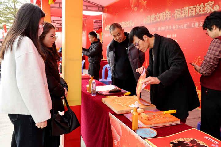 本次活动以“盛世文明年·福润百姓家”为主题,活动除主场演艺外,还同步设置了文明宣传展示区、文明实践服务区、漳台美食品尝区、年货展示展销区、非遗民俗文创区等五大展区共181个展位。