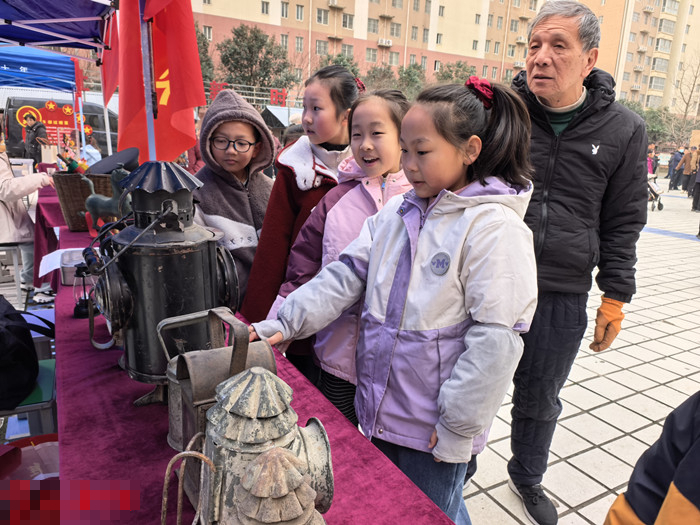 小朋友在文明集市参观老物件。
