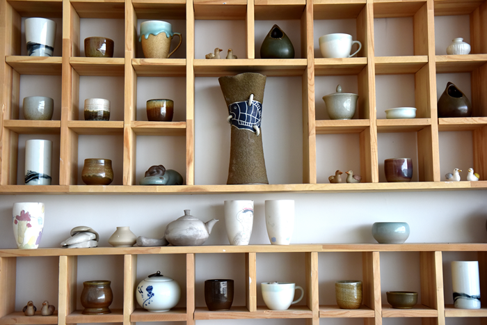 10月20日,在东达沟村艺术体验馆展墙上放满了驻村艺术家及非遗传承人所创作的陶艺作品。(包头市委宣传部供图)
