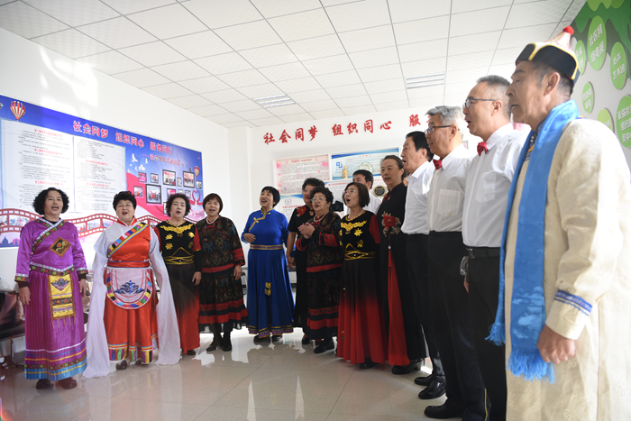 10月21日,退休居民们在东河区安居社区新时代文明实践站活动室排练歌唱节目。(包头市委宣传部供图)