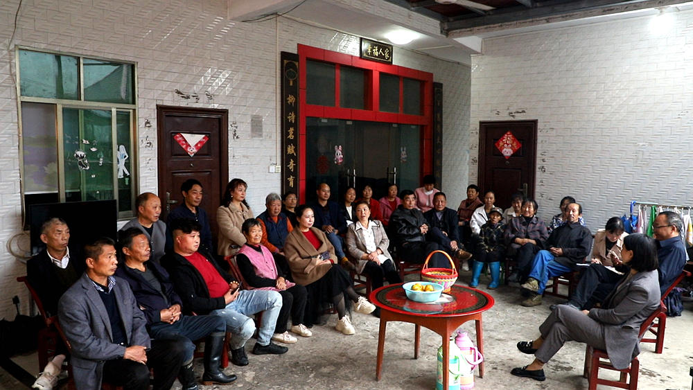 在景阳镇大树垭村,群众在开展乡风文明“微宣讲”。