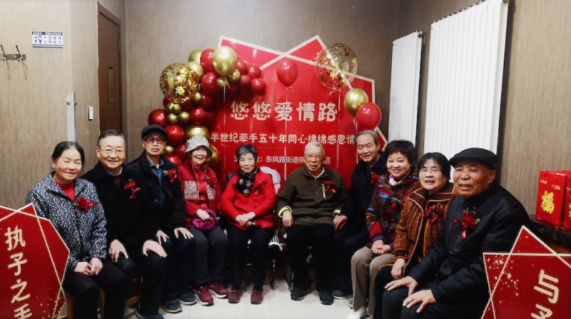 为了树立正确的婚姻观和弘扬良好家风,金台区特别策划了一场别开生面的金婚集体纪念婚礼。在重阳节这一天,20对珍珠婚、金婚、钻石婚老人在祈福酒的祝福下,身着旗袍、中山装,携手走上红地毯。他们相互拥抱,丈夫为妻子行梳发礼、佩戴重阳茱萸香囊,用满满的仪式感诠释了“执子之手,与子偕老”的中国式浪漫爱情。“这场婚礼不仅见证了金婚伉俪的浪漫爱情,更发挥了金婚老人的榜样作用,提升了青年人对婚姻的尊崇度、神圣感和责任感。”金台区民政局婚姻登记处工作人员郭春梅说。