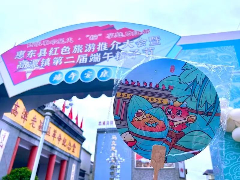 高潭镇坚持走独具老区特色的红色旅游发展之路,注重以节兴文、以节促旅,不断丰富高潭灰水粽承载民族传统和美食文化的重要意义,围绕“传承革命星火·‘粽’享魅力红都”主题举办粽子节,通过现场包粽子、参观、讲解、变魔术、唱山歌等丰富形式,将红色旅游资源与传统民俗深度融合,并以高潭革命老区革命文化、地方特产为特点开发设计出“高火火”“明小姜”“灰小粽”等红色文创IP,根据IP形象衍生出扇子、纸袋、表情包等系列文创产品,推动乡村特产和民间手工艺品等向旅游商品转化,全面显现出惠东红色旅游旺盛的生命力。