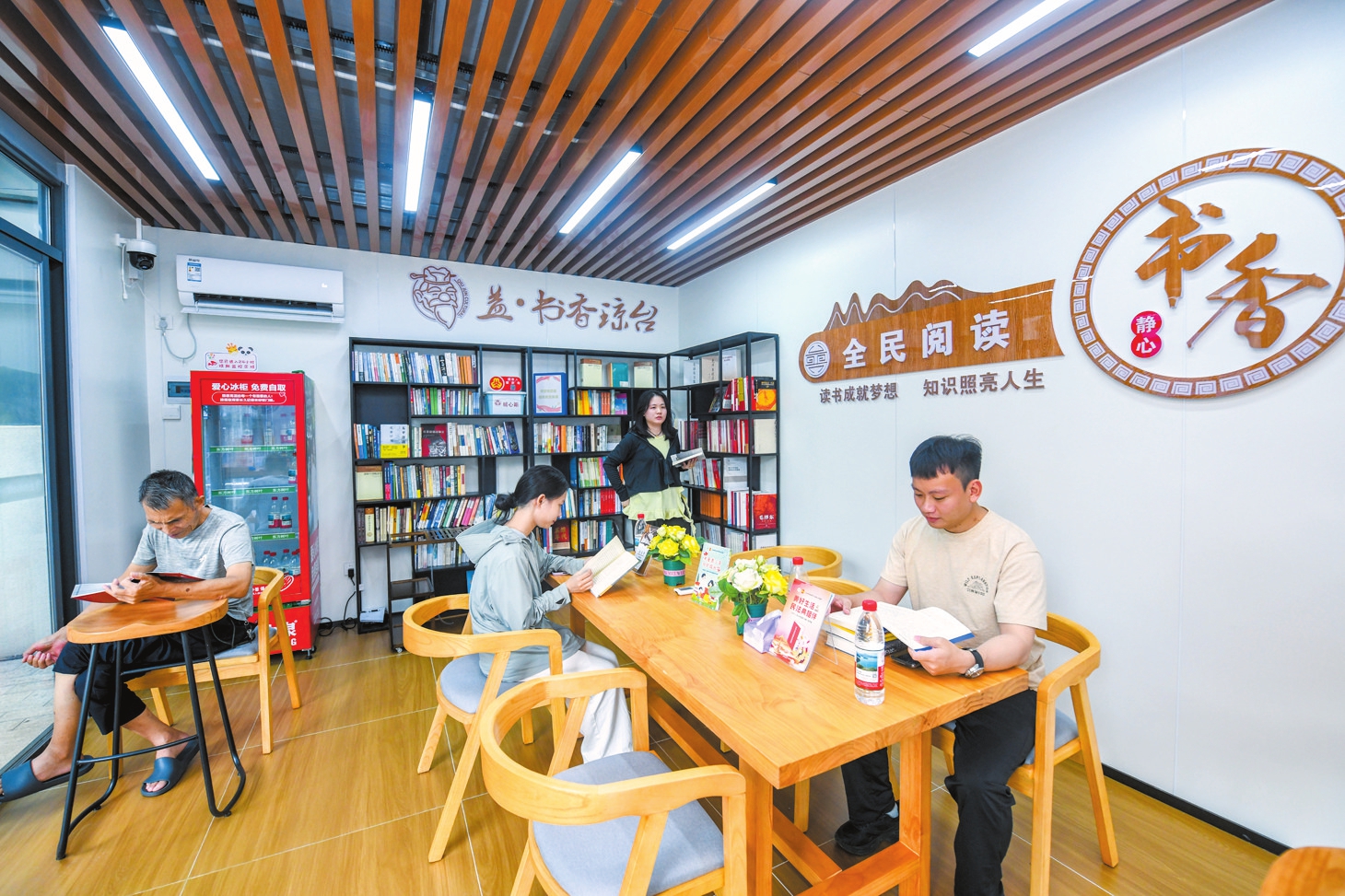 北冲溪社区依托“益·书香琼台”全民阅读项目打造社区读书角。9月18日,在北冲溪社区的暖新驿站内,周边居民在此静心阅读。记者苏弼坤 摄