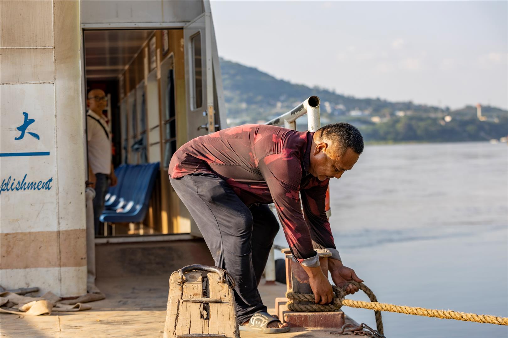 多年的船员生涯,让易中荣的皮肤变得黝黑粗糙,但他的内心却始终明亮而炽热。他坚守着自己的岗位,守护着每一位乘客的安全,践行着自己的信念:只要每一个进出中坝岛的人都能平平安安,就是他最大的成就和幸福。