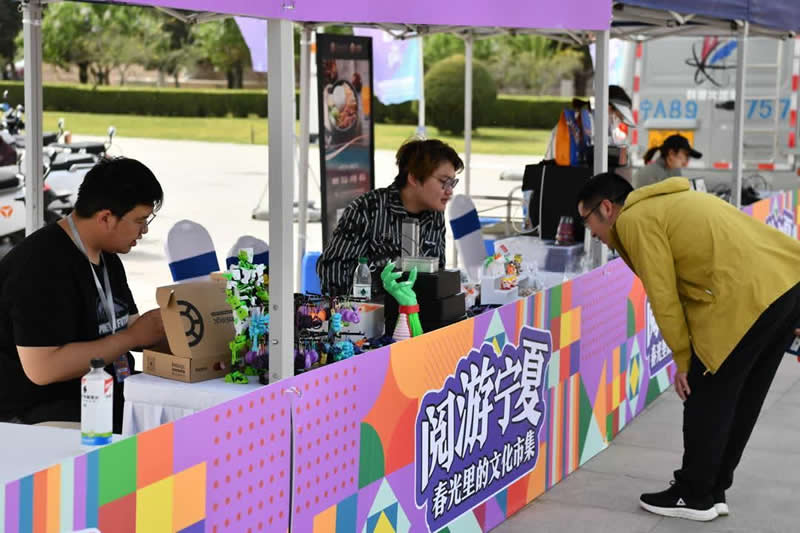 活动现场,“阅游宁夏”春光里的文化市集人头攒动,惠民书展、非遗文创展销、邮政文化集市、科普互动体验等四大主题展区有料有货、各具特色,50多家参展商集中展示优质图书、非遗技艺、文创产品等“宁夏好物”,为广大读者带来了丰富多彩的阅读体验和文化享受。科技赋能阅读,VR阅读体验、AI体感互动体验、AI听书体验等数字阅读项目,让读者畅享多元阅读体验。古籍线装装帧、古籍修复、雕版印刷、活字印刷、石碑传拓、版画拓印等传统文化体验活动,让读者近距离感受中华优秀传统文化的独特魅力。